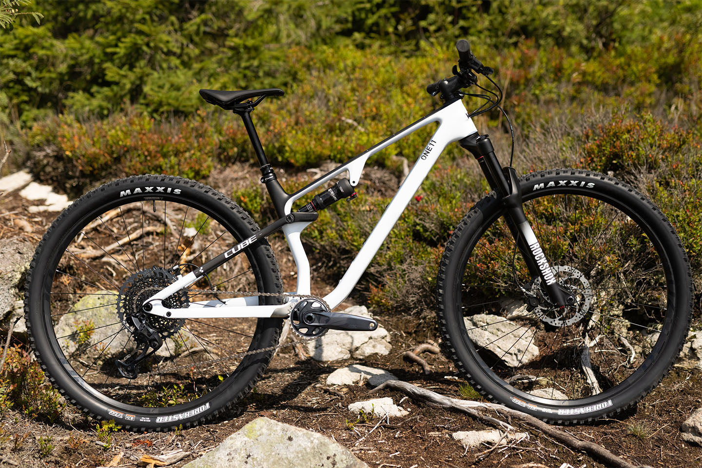 Bicicleta de montaña CUBE AMS ONE11 C:68X Pro Flashwhite'n'Carbon 2022 / RockShox Recon Gold RL Air 100 mm / RockShox Deluxe Select+
